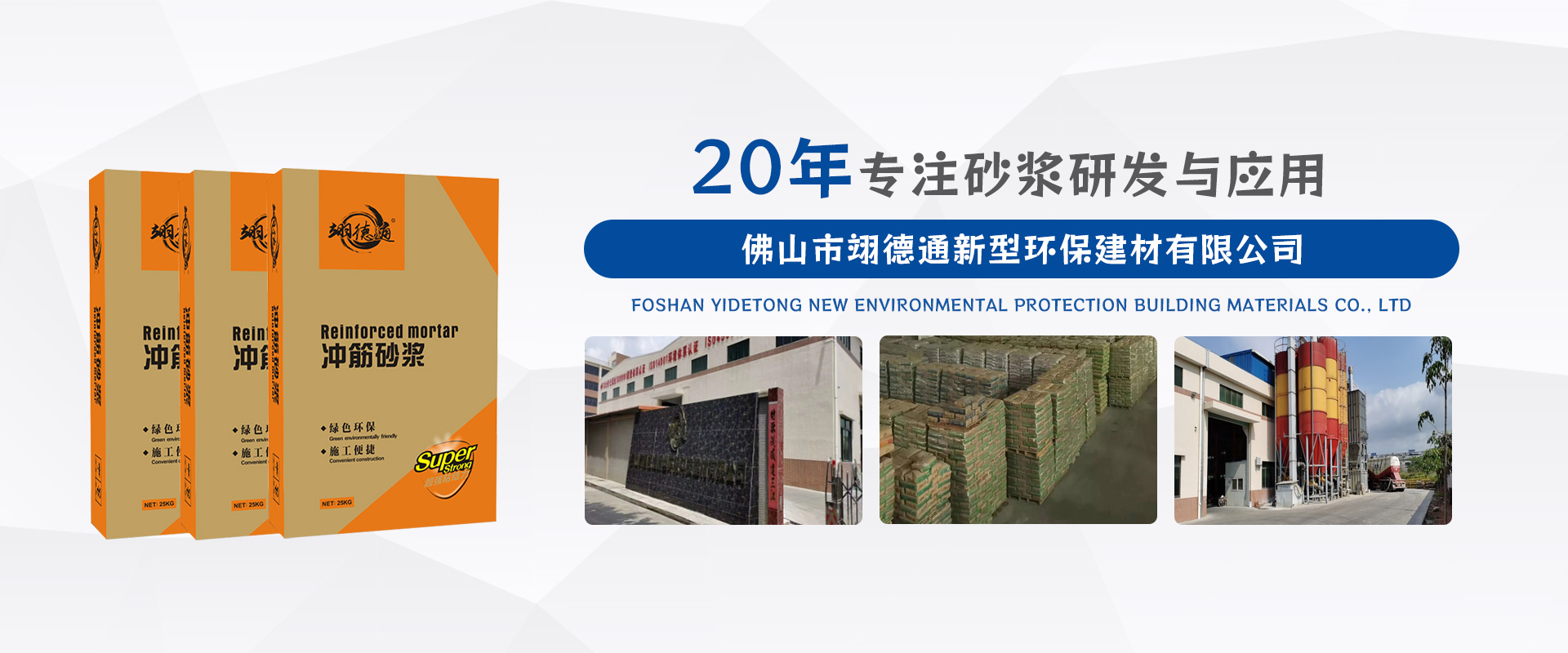 佛山市翊德通新型環保建材有限公司,是一家從事環保節能干粉類砂漿研發、生產和銷售的企業。主要產品有薄漿砌筑砂漿、薄漿抹灰砂漿。輕質抹面砂漿、粉刷石膏砂漿、防水材料、瓷磚膠、填縫劑、耐水膩子等系列產品。公司成立之初就致力于全球領先技術研發,用國際化的經營理念和優質服務在市場上樹立良好的企業形象。把高科技帶進建材行業,擁有先進的全自動化生產線,可以實現散料進倉到成品出來全程都是智能化控制、流水線生產。對產品質量隨時跟蹤、有跡可循。為消費者提供宜居建材產品,這是翊德通的目標和使命。